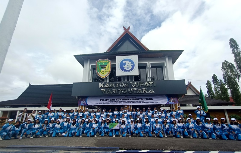 TEWENEWS, Muara Teweh – Pj Bupati Barito Utara Drs Muhlis melepas kontingan Barito Utara dalam rangka mengikuti kegiatan Seleksi Daerah Pra Pekan Olahraga Pelajar Nasional (Selekda Prapopnas) tahun 2024 di Palangka Raya, Rabu (3/7/2024) di halaman kantor bupati setempat.