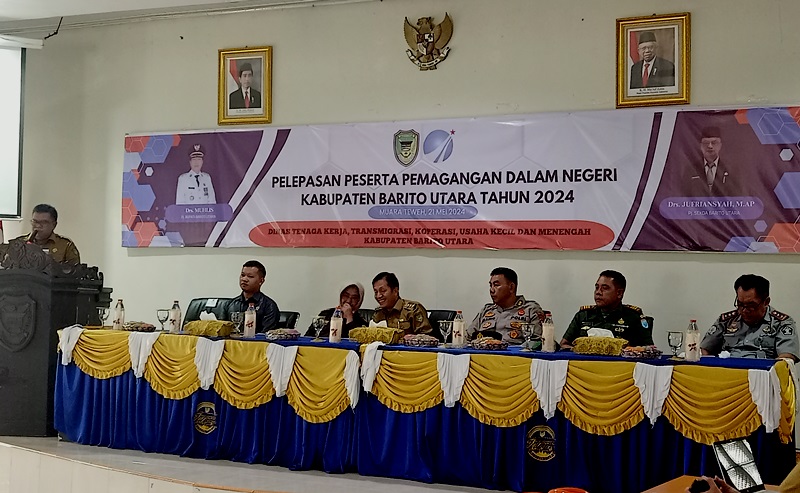 TEWENEWS, Muara Teweh – Sebanyak 50 peserta pemagangan dilepas oleh Pj Bupati Barito Utara Drs Muhlis di aula bappedaLitbang Muara Teweh, Selasa (21/5/2024). Ke 50 peserta pemagangan ini akan di tempatkan di 14 perusahaan yang beroperasi di wilayah Kabupaten Barito Utara.