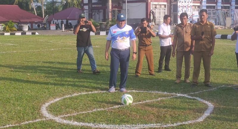 TEWENEWS, Tamiang Layang – Pj Bupati Barito Timur, Indra Gunawan membuka secara resmi Bupati Barito Timur Cup 1 dihalaman kantor Bupati setempat dengan ditandai tendangan bola pertama dilanjutkan permainan mini soccer antara Panitia pelaksana melawan Forkopimda, Senin 15 Juli 2024.