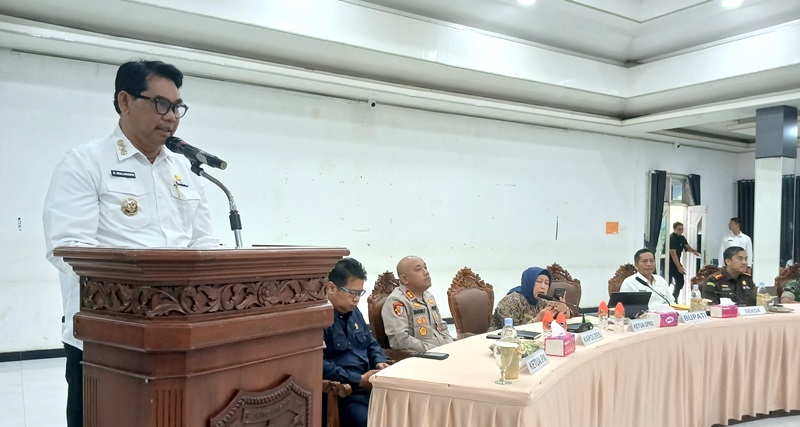 RAKOR DAN SINKRONISASI TSLP-Bupati Barito Utara H Shalahuddin menyampaikan arahan pada rapat koordinasi Koordinasi dan Sinkronisasi Tanggung Jawab Sosial dan Lingkungan Perusahaan (TSLP) serta Optimalisasi Pendapatan Asli Daerah di Gedung Balai Antang Muara Teweh, Rabu (12/11/2025).