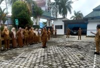 PIMPIN APEL PAGI-Pj Bupati Barito Utara Indra Gunawan saat pimpin apel pagi di Dinas Penanaman Modal dan Pelayanan Terpadu Satu Pintu (DPMPTSP) Kabupaten Barito…