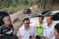 TINJAU PROSES PERBAIKAN JALAN NASIONAL-Pj Bupati Barito Utara Indra Gunawan didampingi Sekda Muhlis dan Kadis PUPR M Iman Topik saat diwawancarai awak media dilokasi…