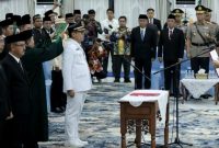 LANTIK PJ BUPATI BARITO UTARA-Gubernur Kalimantan Tengah, H Agustiar Sabran melantik dan mengambil sumpah jabatan Pj Bupati Barito Utara Indra Gunawan di Istana Isen…