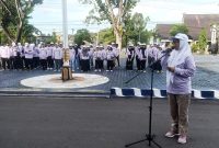 SAMPAIKAN LAPORAN KEGIATAN-Kadis Budparpora Barito Utara, Hj Annisa Cahyawati menyampaikan laporan terkait pelaksanaan kegiatan FBIM pada acara pelepasan kontingen Barito Utara, dihalaman kantor bupati,…