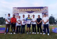 JUARA TOURNAMEN SEPAK BOLA U 40-Pj Bupati Barito Utara Drs Muhlis menyerahkan piala dan uang pembinaan kepada juara tournamen sepak bola U-40 Pj Bupati…
