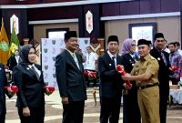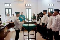 LANTIK PERANGKAT DESA-Kepala Desa Lemo I, Nuripansyah saat melantik dan mengambil sumpah dan janji jabatan perangkat desa Lemo I, di aula Desa Lemo I,…