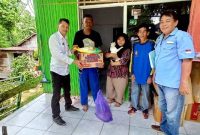 SERAHKAN BANTUAN KORBAN TANAH LONGSOR-Kepala Dinas SOSPMD Kabupaten Barito Utara, Suparmi A Aspian melalui Kabid Penanganan Fakir Miskin, Perlindungan dan Jaminan Sosial, Mujiburrahman menyerahkan…