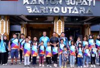 LEPAS KONTINGEN BATARA SWIMMING CLUB-Wakil Bupati Felix Sonadie Y Tingan melepas keberangkatan kontingen Batara Swimming Club yang akan mengikuti kejuaraan renang Fun Swimming Tirta…