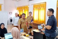 TINJAU PELAYANAN EAZY PASPOR-Kepala Dinas Nakertranskop UKM Barito Utara, M Mastur didampingi Kabid Ketenagakerjaan Ronal Aprianto saat meninjau pelayanan eazy paspor di ruang Dinas…