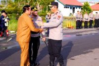 SAMBUT WAKA POLDA KALTENG-Wakil Bupati Barito Utara, Felix Sonadie Y Tingan didampingi Sekda Muhlis, unsur FKPD menyambut kedatangan Waka Polda Kalimantan Tengah Brigjen Pol…