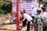 PEMANCANGAN TIANG LISTRIK-Bupati Barito Utara, H. Shalahuddin melaksanakan pemancangan tiang listrik pertama dalam rangka pemasangan jalur listrik masuk desa di Desa Benangin I RT…