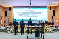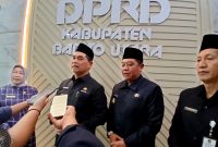 BERITA ACARA PERSETUJUAN-Bupati Barito Utara H Shalahuddin didampingi Wakil Bupati Felik Sonadie Y Tingan, Sekda Muhlis menandatangani berita acara persetujuan bersama Bupati dan DPRD…