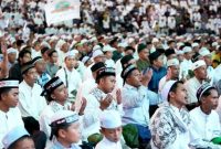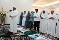 SHALAT MAGRIB BERJAMAAH-Bupati Barito Utara H Shalahuddin bersama ulama karismatik Al-Habib Syech Abdul Qodir Assegaf beserta rombongan saat melaksankaan shalat Magrib berjamaan, shalat hajat…