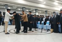 PEMASANGAN TOGA HAKIM-Gubernur Kalteng, H Agustiar Sabran memasangkan baju toga kepada Ketua Dewan Hakim MTQH ke-XXXIII tingkat Provinsi Kalteng tahun 2025. Pelantikan berlangsung di…