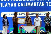TERIMA PENGHARGAAN-Bupati H Shalahuddin menerima piagam penghargaan atas dukungan Pemkab Barito Utara dalam memperkuat layanan bantuan hukum bagi masyarakat. Penyerahan penghargaan dilakukan langsung oleh…
