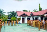PIMPIN APEL DI DINAS PUPR-Bupati Barito Utara H Shalahuddin pimpin apel pagi di halaman Dinas PUPR, didampingi Wakil Bupati Felix Sonadi Y Tingan, Selasa…