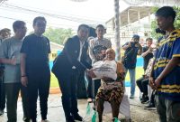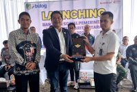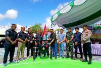 SERAHKAN BANTUAN PAKET SEMBAKO-Wakil Bupati Barito Utara, Felix Sonadie Y Tingan didampingi Asisten Sekda Eveready Noor, mewakili unsur FKPD dan kepala perangkat daerah menyerahkan…
