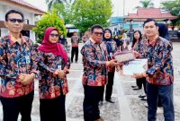 BERIKAN REWARD-Kepala Dinas Nakertranskop UKM Barito Utara HM Mastur menberikan reward dan apresiasi kepada sejumlah ASN yang dinilai berprestasi dan berdedikasi tinggi dalam menjalankan…