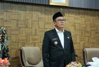SERAHKAN JAWABAN PEMERINTAH-Pj Bupati Indra Gunawan didampingi Sekda Muhlis menyerahkan pidato jawaban pemerintah terhadap pandangan umum fraksi terhadap pelaksanaan APBD tahun 2024 di ruang…