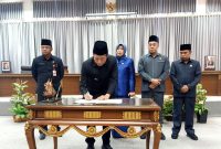 TANDATANGAN PAKTA INTEGRITAS-Pj Bupati Drs Muhlis didampingi Pj Sekda Jufriansyah tandatangani pakta integritas dalam rangka Penyusunan dan Pengesahan Kebijakan Umum Perubahan Anggaran dan Prioritas…