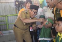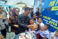 PENCANANGAN PIN POLIO-Pj Bupati Barito Utara Drs Muhlis didampingi Pj Sekda Jufriansyah, mewakili unsur FKPD, staf ahli bupati, asisten sekda dan kepala perangkat daerah…