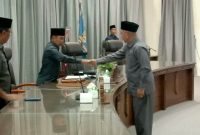PENDAPAT AKHIR FRAKSI PPP-Juru bicara Fraksi PPP DPRD Barito Utara H Abri menyerahkan pendapat akhir fraksi terhadap pelaksanaan APBD 2023 kepada pimpinan rapat paripurna,…