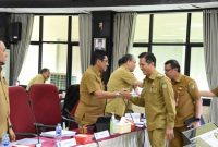 FINALISASI BAHAN PAPARAN-Pj Bupati Barito Utara Drs Muhlis didampingi Pj Sekda Barito Utara Drs Jufriansyah saat melakukan pertemuan dengan kepala perangkat daerah dalam rangka…