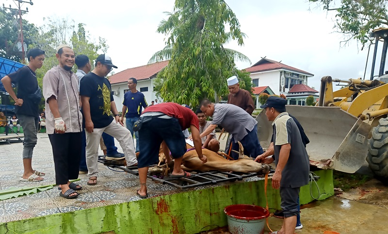 Dia juga menjelaskan, suasana Hari Raya Idul Adha tahun ini kita manfaatkan untuk berbagi kepada sesama. Menurutnya, daging hewan qurban ini, disalurkan kepada tenaga honorer, petugas keamanan (security), petugas PJU Dinas PUPR dan masyarakat,” kata dia.