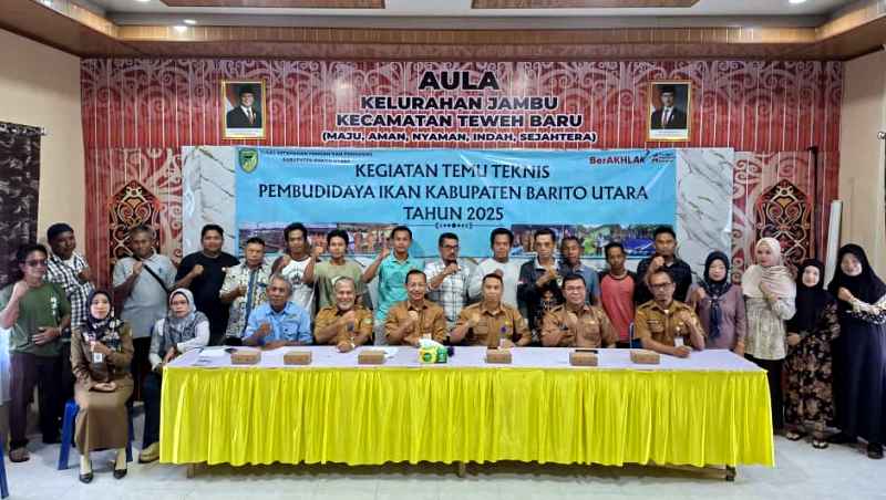 TEWENEWS, Muara Teweh – Dinas Ketahanan Pangan dan Perikanan (DKPP) Kabupaten Barito Utara menggelar kegiatan Temu Teknis Pembudidaya Ikan Kabupaten Barito Utara Tahun 2025, yang berlangsung di Aula Kelurahan Jambu, Kecamatan Teweh Baru, Rabu (22/10/2025).