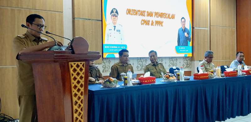ORIENTASI DAN PEMBINAAN CPNS BPBD-Pj Bupati Barito Utara Indra Gunawan membuka kegiatan Pembekalan dan Orientasi bagi CPNS dan PPPK dilingkup BPBD Kabupaten Barito Utara. Kegiatan ini digelar di Aula Dinas PUPR Kabupaten Barito Utara, Selasa (10/6/2025)