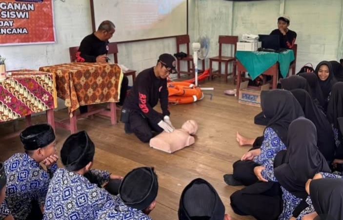 Melalui kegiatan Sosialisasi dan Edukasi Pengenalan Secara Dini Penanganan Kebencanaan, BPBD menggelar pelatihan bagi para siswa Madrasah Tsanawiyah (MTs) Darul Ulum di Desa Mangkahui, Kecamatan Murung, Kabupaten Murung Raya, pada Kamis (9/10/2025).