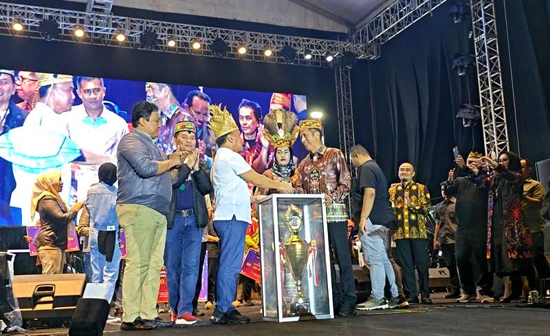 TEWENEWS, Palangka Raya – Festival Budaya Isen Mulang (FBIM) dan Festival Kuliner Nusantara resmi ditutup oleh Gubernur Kalimantan Tengah H Sugianto Sabran, Jumat (24/5/2024) malam di halaman Indoor Serbaguna Jalan Cilik Riwut KM 5 Palangka Raya. Perhelatan akbar yang digelar selama 7 hari tersebut ditutup ceremony-nya menghadirkan grup Dewa 19 dengan dua vokalisnya Ello dan Virzha.