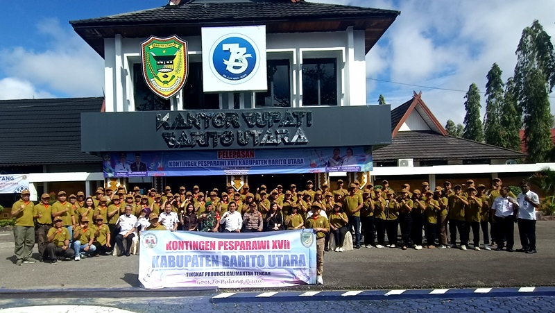 TEWENEWS, Muara Teweh – Pj Bupati Barito Utara Drs Muhlis melepas kontingen Kabupaten Barito Utara dalam mengikuti kegiatan Pesta Paduan Suara Gerejawi (Pesparawi) ke XVII tingkat Provinsi Kalimantan Tengah di Kabupaten Pulang Pisau, di halaman kantor bupati, Rabu (26/6/2024).