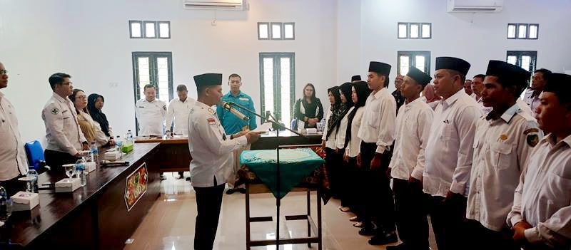 LANTIK PERANGKAT DESA-Kepala Desa Lemo I, Nuripansyah saat melantik dan mengambil sumpah dan janji jabatan perangkat desa Lemo I, di aula Desa Lemo I, Rabu (25/9/2024).