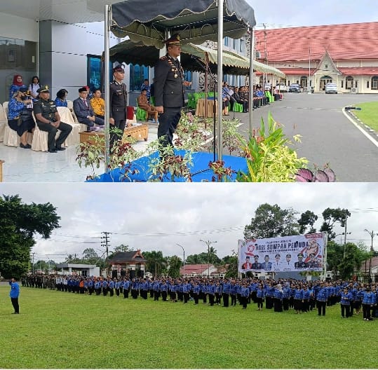 TEWENEWS, Tamiang Layang — Kapolres Barito Timur (Bartim) AKBP Eddy Santoso, S.I.K., M.H. bertindak sebagai Pembina Upacara pada apel peringatan Hari Sumpah Pemuda ke-97 yang digelar di halaman Kantor Bupati Barito Timur, Selasa (28/10/2025).
