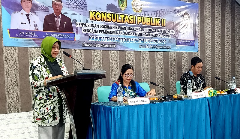 “Saya mengucapkan terima kasih dan penghargaan setinggi-tingginya kepada kepala Dinas Lingkungan Hidup Kabupaten Barito Utara beserta jajarannya yang telah menyelenggarakan kegiatan konsultasi publik ini,” kata Pj Bupati Muhlis dalam sambutan tertulisnya yang disampaikan Staf Ahli Bupati Bidang Pemerintahan dan Kesejehateraan Rakyat, drg Dwi Agus Setijowati saat membuka kegiatan tersebut.
