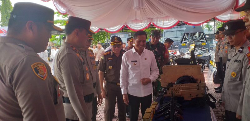 CEK KESIAPAN SARPRAS-Wakapolda Kalteng Brigjen Pol Rakhmad Setyadi didampingi Pj Bupati Drs Muhlis dan Kapolres AKBP Gede Eka Yudharma saat melakukan pengecekan sarana dan prasarana persiapan menghadapi Pilkada Serentak 2024 dan kebakaran hutan dan lahan (Karhutla) dan bencana banjir di daerah setempat, Rabu (18/9/2024).