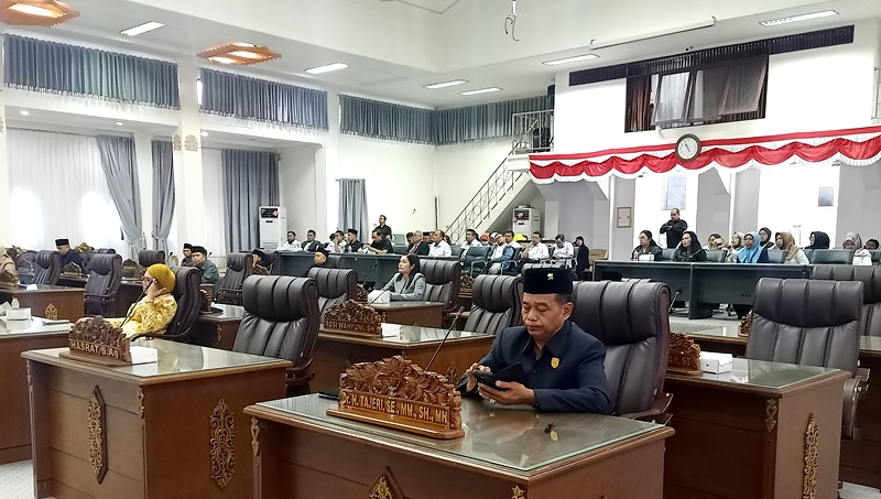 TIDAK QOURUM, PARIPURNA DPRD DITUNDA-Rapat Paripurna IV DPRD dengan agenda penyampaian pendapat akhir fraksi-fraksi DPRD Barito Utara terhadap Raperda tentang Perubahan APBD TA 2024 dan pendapat akhir fraksi terhadap Raperda RPJMD Barito Utara tahun 2025-2025 ditunda, karena tidak memenuhi qourum. Tampak korsi dewan banyak yang kosong, Rabu (25/9/2024).