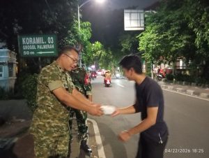 Jakarta Barat – Sebagai wujud rasa syukur kepada Tuhan Yang Maha Esa atas bertambahnya usia dan sebagai wujud kedekatan antara TNI dan Warga Masyarakat, Komandan Koramil 03/Grogol Petamburan – Kodim 0503/Jakarta Barat Mayor Inf Manatap Rajagukguk, S.E., M.H., M.M., menggelar aksi sosial dengan membagikan 100 kotak makan malam kepada Warga Masyarakat yang melintas di depan Makoramil 03/Grogol Petamburan, Jl. Anggrek Garuda Raya, Jakarta Barat, Rabu (22/04/2026).