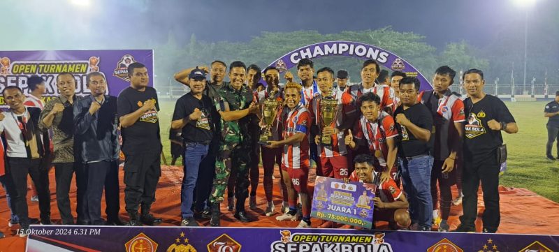 TEWENEWS, Muara Teweh – Open Turnamen Sepak Bola Dandim dan Kapolres Cup dalam Rangka Memeriahkan HUT TNI Ke – 79 Tahun 2024 yang berlangsung kurang lebih 2 pekan sukses digelar dan berakhir. Pj Bupati Barito Utara dalam hal ini diwakili oleh staf Ahli Bupati Heri Jhon menutup secara resmi Turnamen Sepak Bola di Lapangan Stadion Swakarya Jln. Pramuka Muara Teweh Kabupaten Barito Utara, Selasa (15/10/2024) petang.
