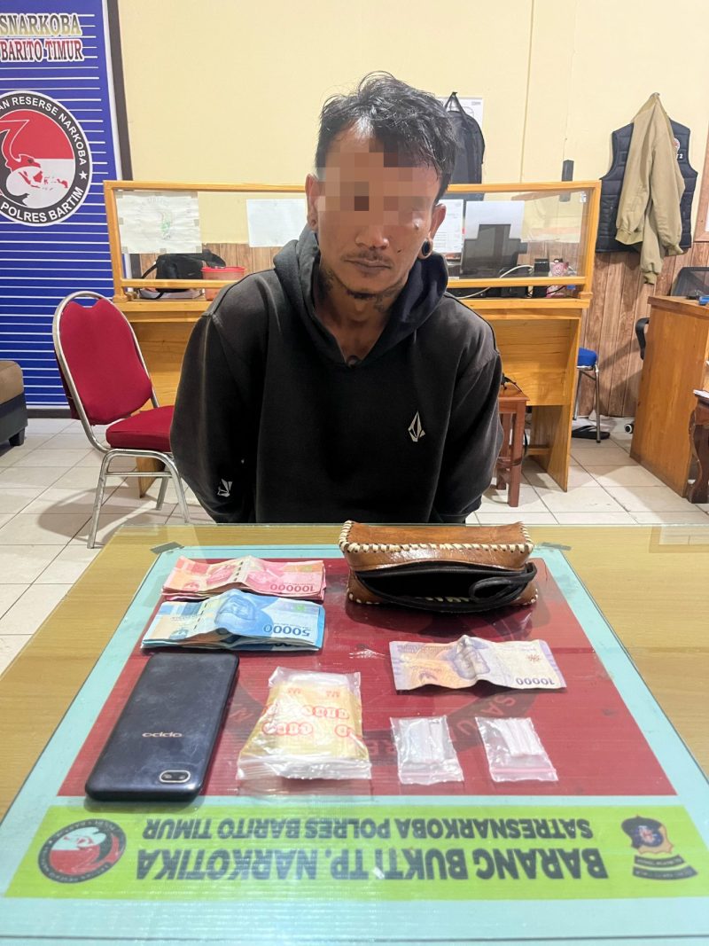 TEWENEWS, Barito Timur – Satuan Reserse Narkoba (Satresnarkoba) Polres Barito Timur – Polda Kalteng, kembali menunjukkan komitmennya dalam memberantas peredaran gelap narkotika, petugas berhasil mengamankan seorang pria terduga pengedar narkotika golongan I jenis sabu beserta barang bukti sebanyak 5 paket sabu dalam dua lokasi berbeda di wilayah Kecamatan Dusun Tengah, Kabupaten Barito Timur. Minggu, 20/4/2025