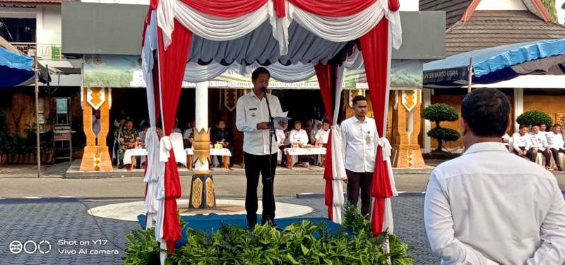 HARI LINGKUNGAN HIDUP SEDUNIA-Pj Bupati Barito Utara Drs Muhlis saat memimpin apel dalama rangka memperingati Hari Lingkungan Hidup Sedunia di halaman kantor Bupati, Rabu (5/6/2024).
