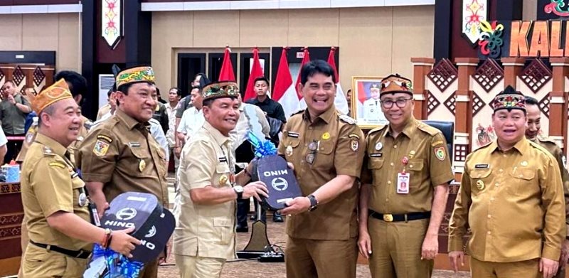 TERIMA BANTUAN SARPRAS-Bupati Barito Utara H Shalahuddin menerima sarana dan prasana (Sarpras) pengelolaan sampah dari Gubernur Kalimantan Tengah, H. Agustiar Sabran, pada Selasa (21/10/2025) usai rakor optimalisasi PAD di Aula Jayang Tingang, Kantor Gubernur.