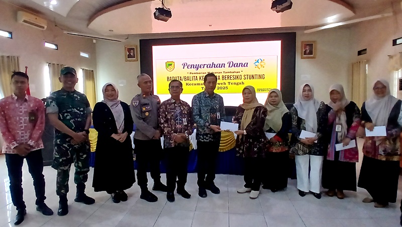 PENYERAHAN DANA PENANGGULANGAN STUNTING-Sekda Barito Utara Drs Muhlis serahkan dana untuk penanggulangan stunting (untuk pemberian makanan tambahan) bagi Baduta atau Balita keluarga beresiko stunting Kecamatan Teweh Tengah, di aula Bappedarida, Kamis (18/9/2025).