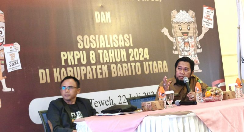 Hal tersebut dikemukakan Dr Akhmad Rizali S.Si, M.Si yang menjadi narasumber dalam sosialisasi penyusunan visi misi Paslon serta sosialisasi PKPU 8 Tahun 2024 yang diselenggarakan KPU Kabupaten Barito Utara, di Aula PS Cafe Muara Teweh, Senin(22/7/2024).