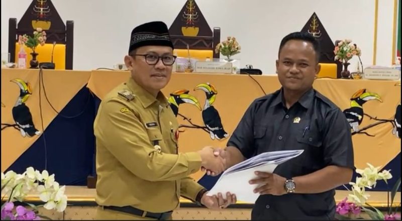 TEWENEWS, Tamiang Layang – Pimpinan DPRD Barito Timur dan Penjabat (Pj) Bupati tandatangani bersama berita acara persetujuan bersama tentang pertanggungjawaban Anggaran Pendapatan dan Belanja Daerah (APBD) tahun anggaran 2023.