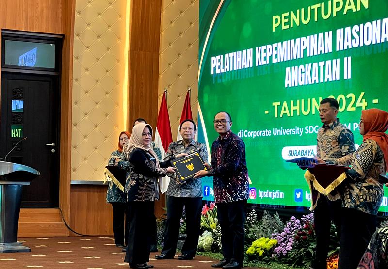 Penutupan PKN tingkat II angkatan II tahun 2024 dihadiri Kepala BKPSDM Provinsi Jawa Timur yang diwakilkan oleh Kepala Bidang Pengembangan, Pengajaran Kompetensi Dasar dan Manajerial, Dra Sri Rahayuningsih, Assisten Adm Umum Setda Jawa Timur Dr H Akh Jazuli, dan Kapus Pengembangan Kompetensi Kepemimpinan Nasional dan Manajerial ASN LAN RI, Dr Giri Saptoaji.