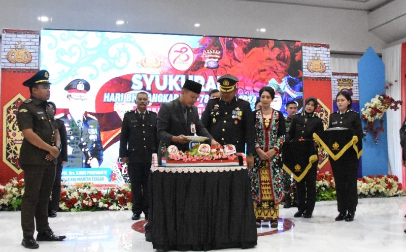 SYUKURAN HUT BHAYANGKARA KE 78-Mewakili Pj Bupati Barito Utara, Staf ahli bupati bidang ekonomi dan keuangan Hery Jhon Setiawan menghadiri syukuran Hari Ulang Tahun (HUT) Bhayangkara ke 78 tahun 2024 di gedung Balai Antang Muara Teweh, Senin (1/7/2024).