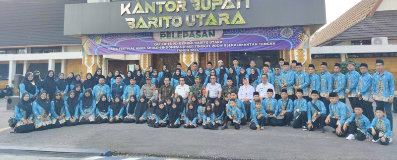 TEWENEWS, Muara Teweh – Pj Bupati Barito Utara Drs Muhlis melalui Asisten Sekda Bidang Pemerintahan Eveready Noor melepas kontingen Festival Anak Sholeh Indonesia (FASI) Kabupaten Barito Utara mengikuti FASI tingkat Provinsi Kalimantan Tengah (Kalteng), di halaman kantor Bupati, Rabu (9/10/2024).