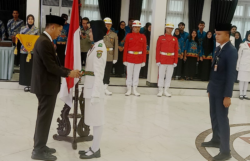 KUKUHKAN PASKIBRAKA-Pj Buapti Barito Utara Drs Muhlis mengukuhkan pasukan pengibar bendera pusaka (Paskibraka) tingkat Kabupaten Barito Utara tahun 2024 di gedung balai Antang Muara Teweh, Kamis, (15/8/2024) petang.